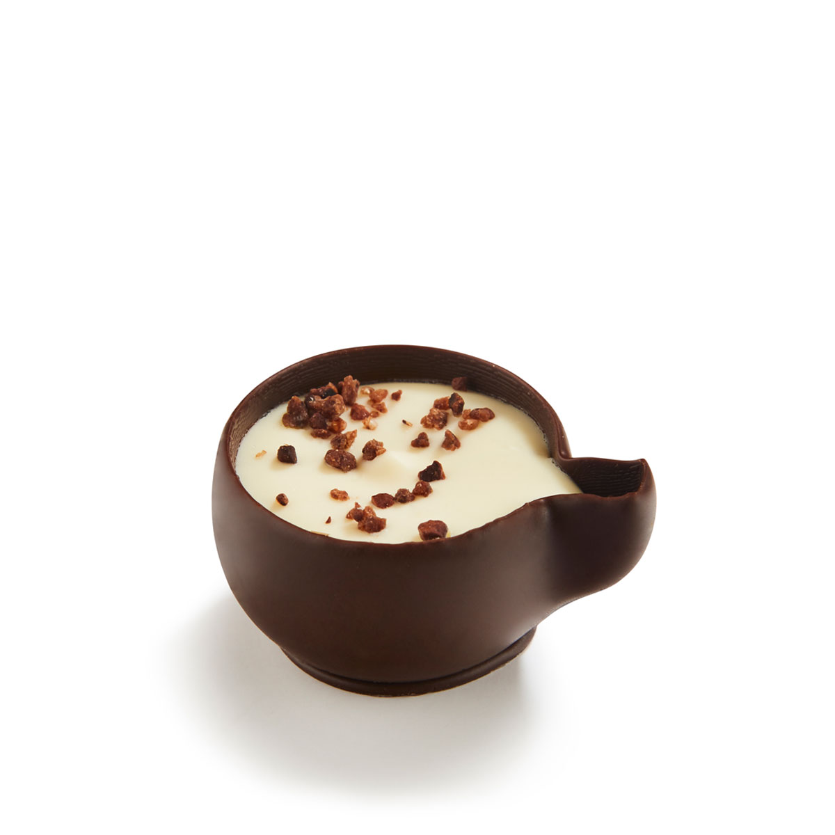 Ingredientes: açúcar 43,95%, massa de cacau 18,98%, xarope de glicose 15,92%, gordura vegetal 5,80% (coco 5,80%), água 5,38%, manteiga de cacau 3,52%, AVELÃ 2,41%, gordura de LEITE 1,69%, LEITE em pó integral 0,87%, proteína de ervilha 0,63%, emulsificantes 0,33% (E322 0,21%, lecitina de SOJA 0,11%), aroma natural 0,30%, sal 0,13%, natural aroma de baunilha 0,11%. Pode conter vestígios de: OVOS, GLÚTEN.
